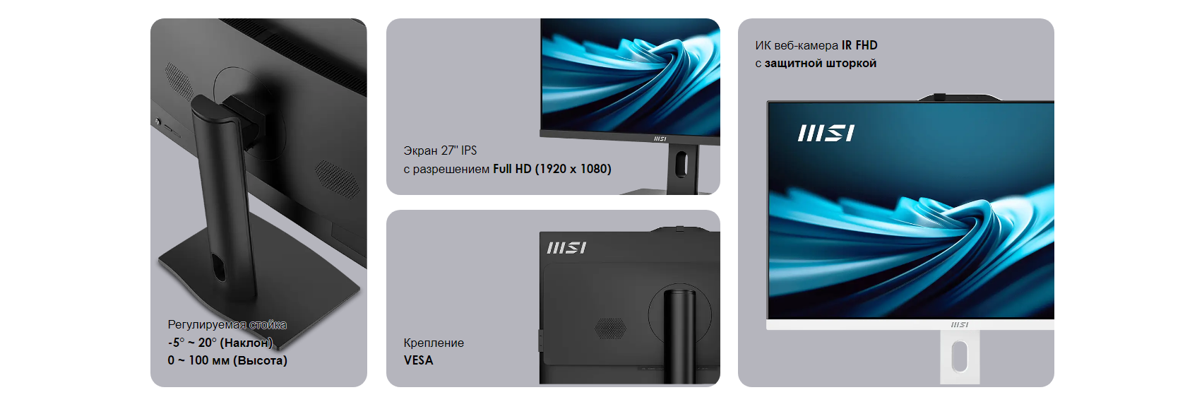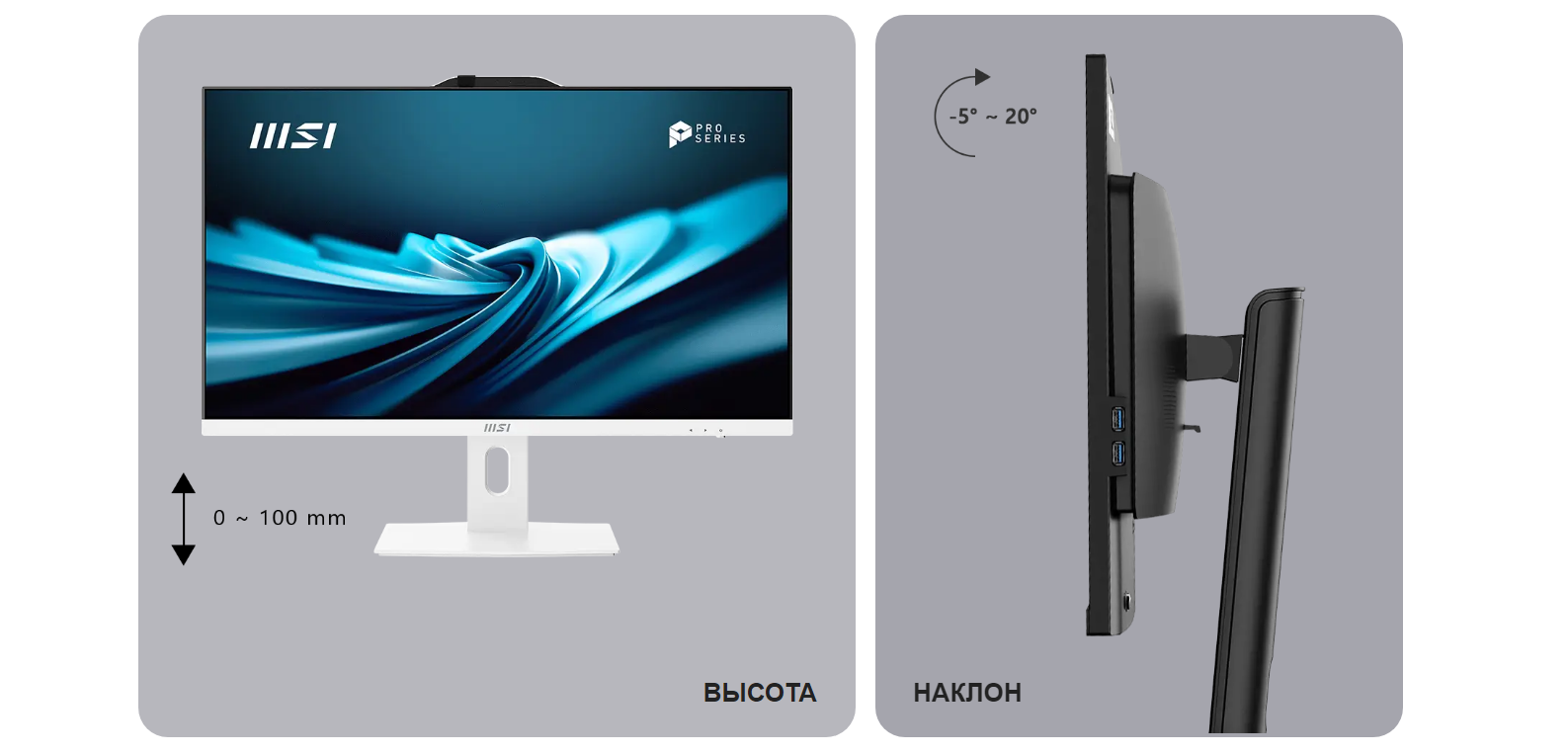 Серия моноблоков PRO AP272P создана с заботой о зрении пользователя. Технология MSI EyesErgo обеспечивает защиту от мерцания и уменьшает количество синего света, сертифицирована TÜV. Экран моноблока с антибликовым покрытием имеет эргономичную подставку.