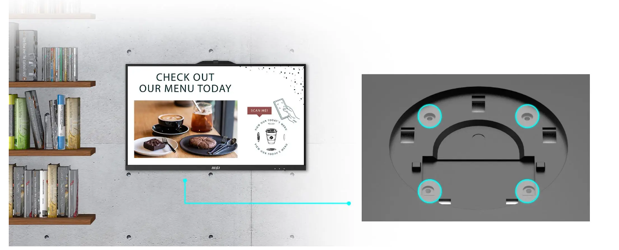 Моноблок серии PRO AP272P можно установить на стену с помощью VESA-совместимого кронштейна, например для использования в качестве цифрового табло.